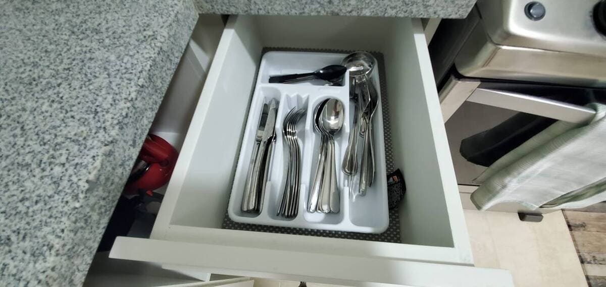 This apartment is fully equipped and furnished, ready to move into.