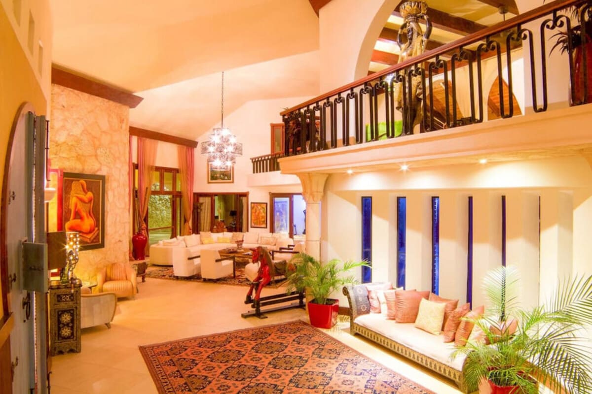 Villa de los Sueños is beautifully decorated with solid Angelim wood floors and doors, porcelain, coral, and brick finishes, Moroccan lamps, chandeliers, luxury furnishings, and unique artwork. Every room feels like it's straight out of a magazine cover!